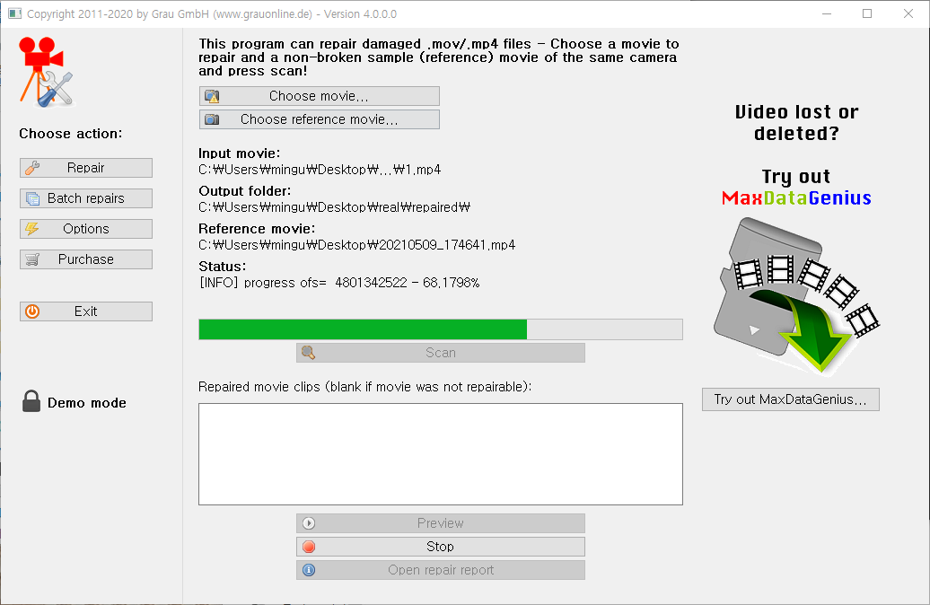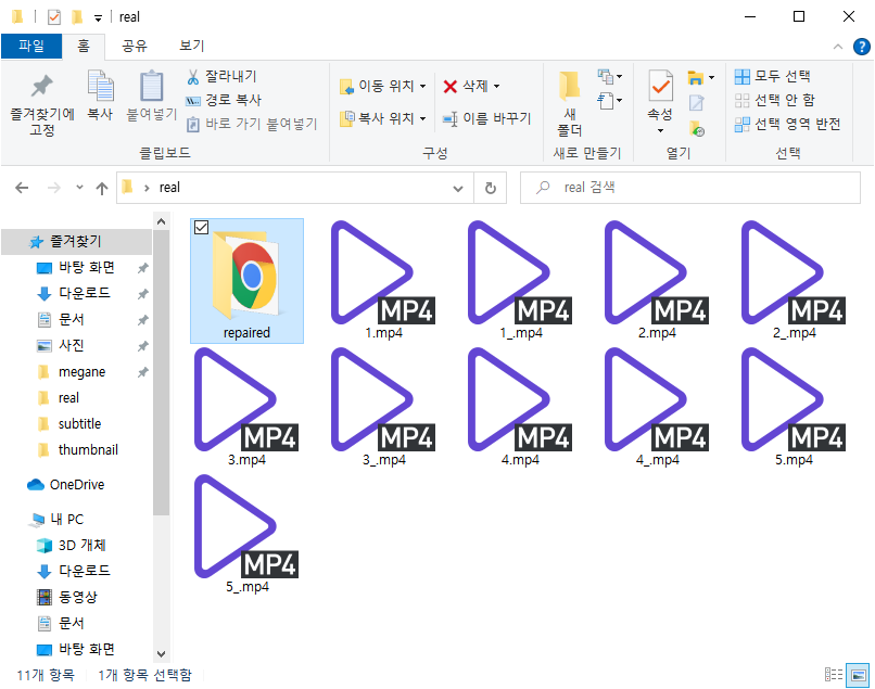 이 repaired 폴더로 들어가면 복구 된 파일이 있습니다.
